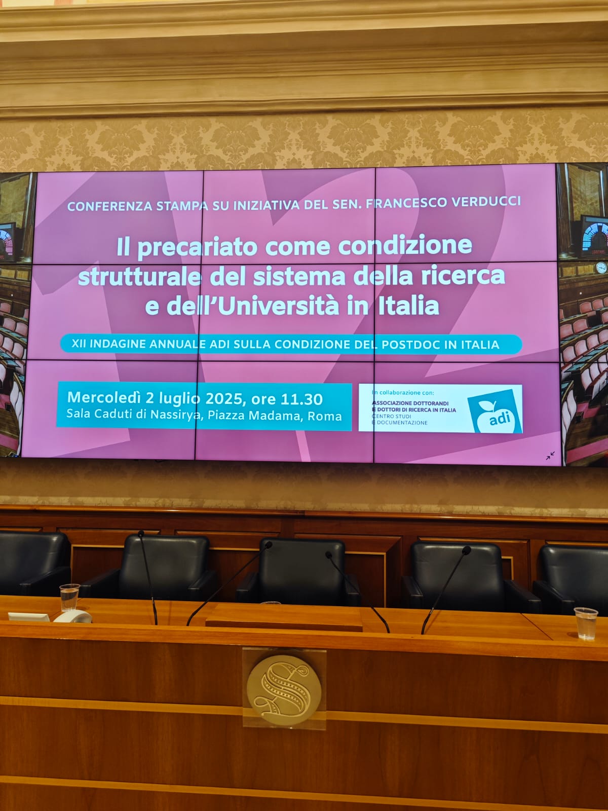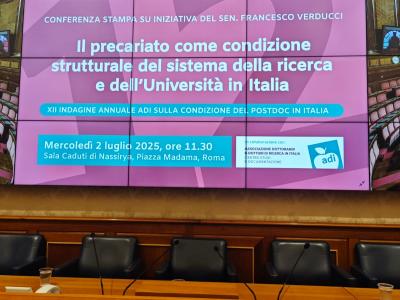 Il 2 luglio 2025, presso la Sala Caduti di Nassirya del Senato della Repubblica, l’ADI – Associazione Dottorandi e Dottori di Ricerca in Italia ha presentato i risultati della XII Indagine annuale sulla condizione del post-doc in Italia, che ha raccolto 2.888 risposte tra aprile e agosto 2024 da ricercatrici e ricercatori attivi nelle università e nei centri di ricerca italiani.