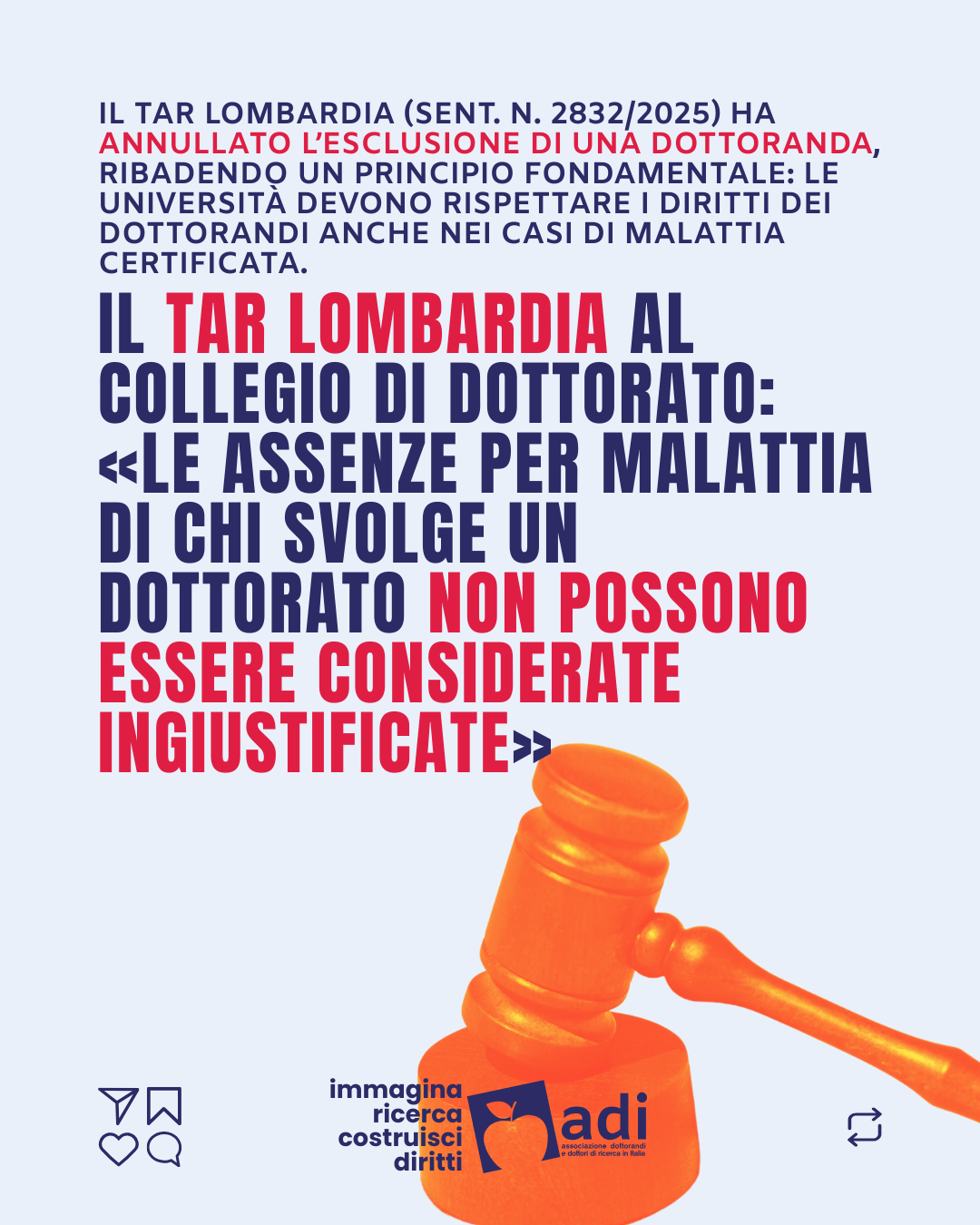 Questa sentenza dimostra che la tutela della salute è un diritto fondamentale anche nel percorso di dottorato. Nessun dottorando o dottoranda deve essere lasciato solo di fronte a un momento di fragilità.